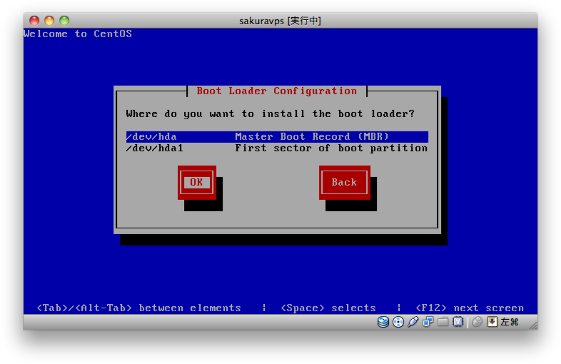 - 仮想マシンの画面の中をクリックすると仮想マシンの操作になることと左⌘キーを押せばMac OS Xの操作に戻ることの説明が表示されますので、内容を確認してから「OK」ボタンをクリックします。